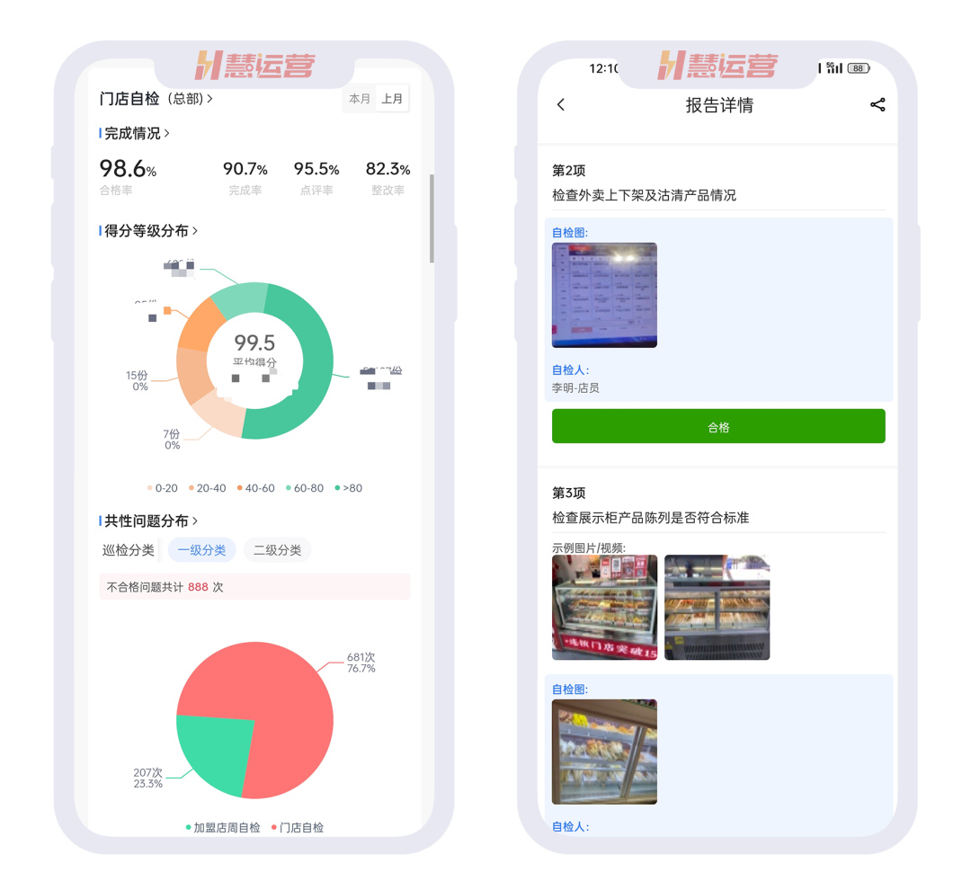 特别是门店自检板块,门店每月提交超15万份的早晚自检报告,督导的点评率达到95.5%,点评中发现的问题,门店整改率也高达81.3%,可以说是行业的高水准,这是门店和总部共同努力达成的成果。