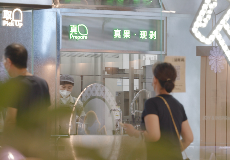 (图:喜茶门店真果现剥窗口展示真品质原料)
