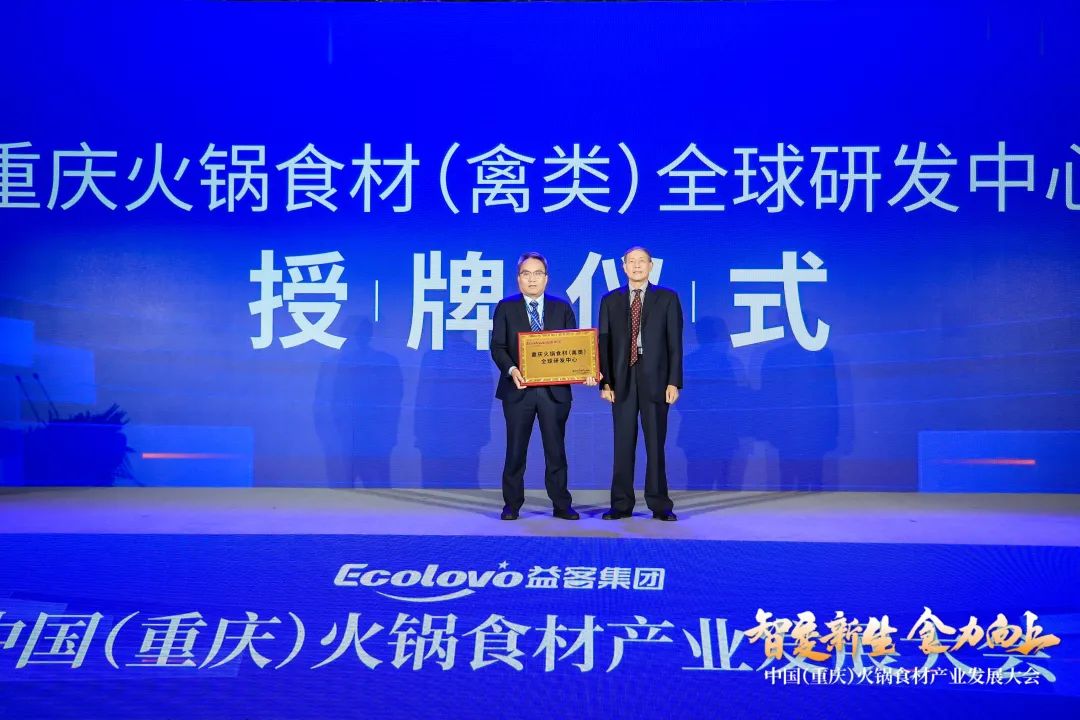 在首届火锅食材产业大会授牌仪式上,重庆火锅协会向益客集团颁发了“重庆火锅食品(禽类)产业研发中心”的重要认证,这是对益客集团技术研发、质量管控以及行业贡献的肯定。