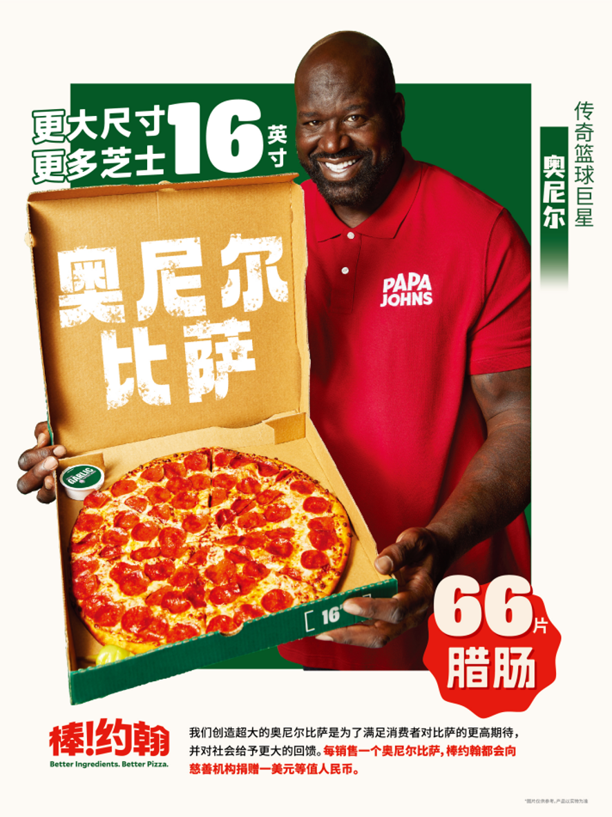 2、棒约翰比萨×大鲨鱼奥尼尔共推新品