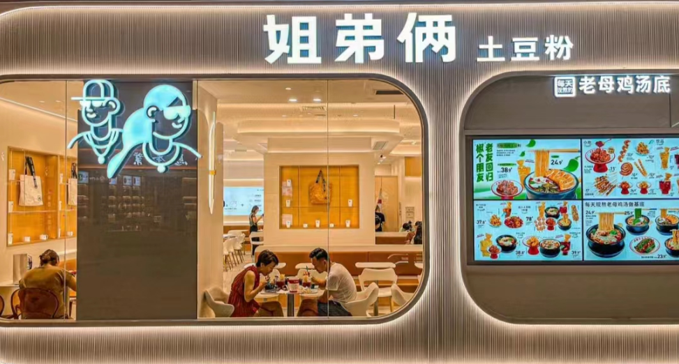 如今随便走进一家姐弟俩土豆粉门店,白色极简风装修,质感空间线条,明亮温暖灯光氛围,几乎都无一处不干净时尚,吸引着消费者不断打卡拍照。