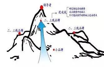 商业就是战争,在这场战争中,敌人就是竞争对手,顾客就是要占领的阵地,目标就是要赢得胜利。 心智就是战场。商战是在心智中进行的,商战的战场就在顾客6英寸宽的头脑中,这是理解商业竞争本质的关键概念。 你不能凭借更好的产品取胜,而是要靠更好的认知取胜。 贪欲常唆使一个品牌领导者增加兵力,以期控制整个阵地。 而结果常常是,在试图保住阵地的某一小部分时,整个阵地丧失殆尽。就像腓特烈大帝说过的:“企图守住一切的人,什么也守不住。” 商战并非只有一种作战方式,而是有四种。你首先要做的重要决定就是知道你要采取哪种战略形式。 这取决于你在整个战略格局中的位置,每个产品品类或行业都会形成这种战略格局。