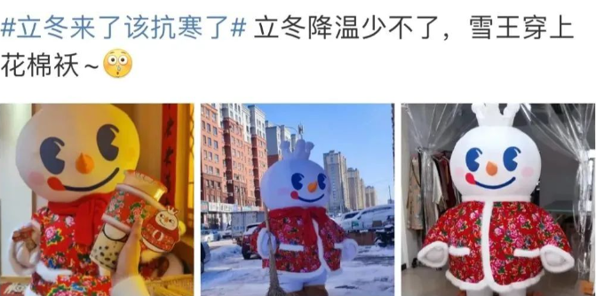 5、蜜雪冰城雪王穿上“东北大花袄”,网友:土气中带着可爱