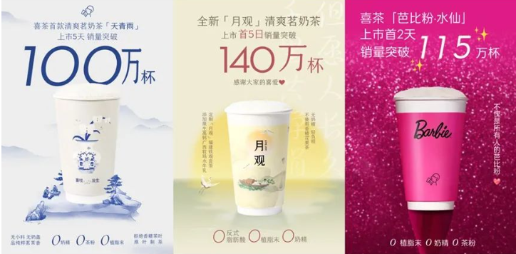 据悉,喜茶清爽茗奶茶系列现有三款产品销售表现优异,首款清爽茗奶茶天青雨上市5天售出超百万杯,月观上市5天售出超140万杯,芭比粉·水仙则刷新清爽茗奶茶系列最新销售记录。