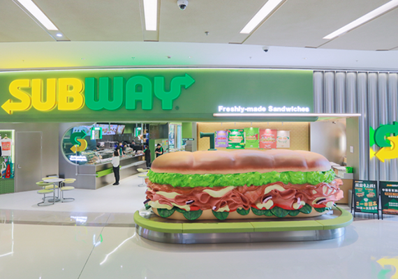 据商场内地广介绍,该店也为赛百味中国首家旗舰店。门店拥有超大的赛百味标志性三明治艺术装置,以及独立艺术家专属定制WALL ART插画墙。