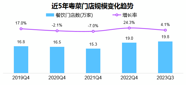 粤菜目前门店规模在地方菜系中排第二,近2年门店规模快速增多,发展势头良好,2023Q3门店数已近20万家。