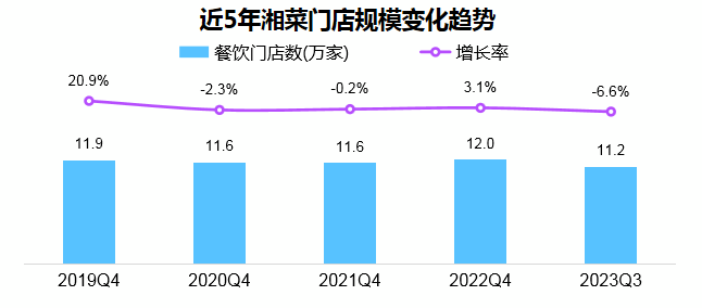 湘菜门店规模在地方菜系中排第五,近5年门店数一般都稳定在11+万家。