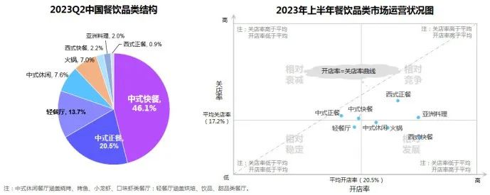 2023年上半年,中式快餐与中式正餐市场洗牌加剧,马太效应越发明显;西式快餐、中式休闲与火锅反而更具发展潜力。
