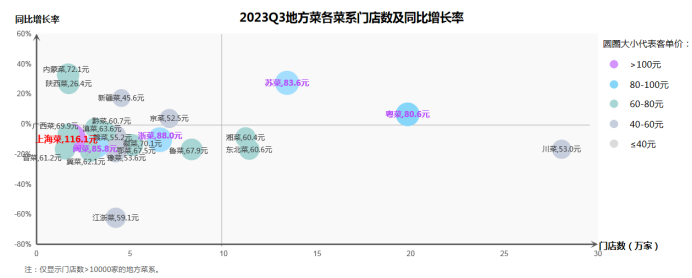 川菜门店数最多,西北菜系涨幅快,上海菜最高档