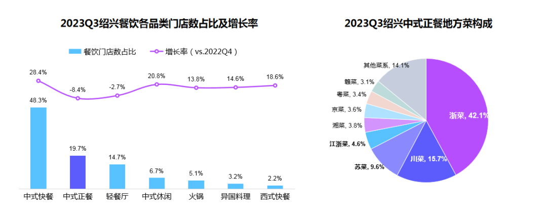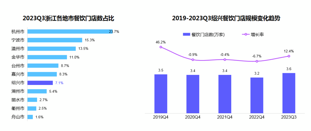1、绍兴餐饮门店规模排名浙江第七,2023年市场加速复苏
